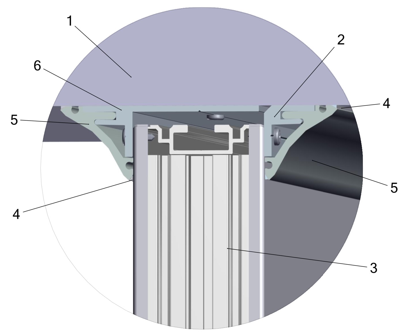 5 - Aluminium coving; 6 - T - strip